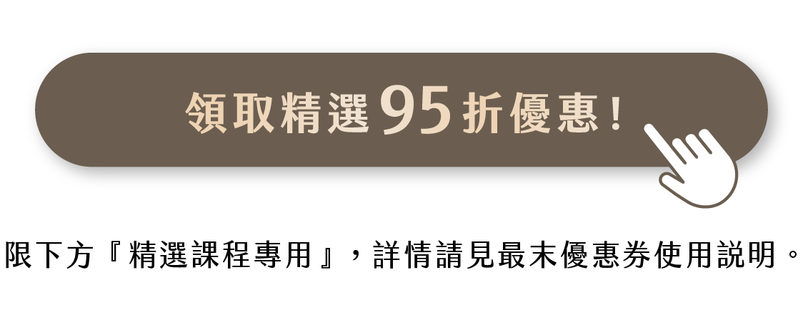 3. 95 折優惠券(折扣代號:S2208)使用範圍僅限本頁面中的 6 堂精選課程: