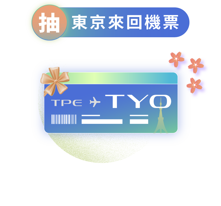 - 。滿額抽獎獎項包含東京台北來回機票一名、Apple iPad Pro 一名。