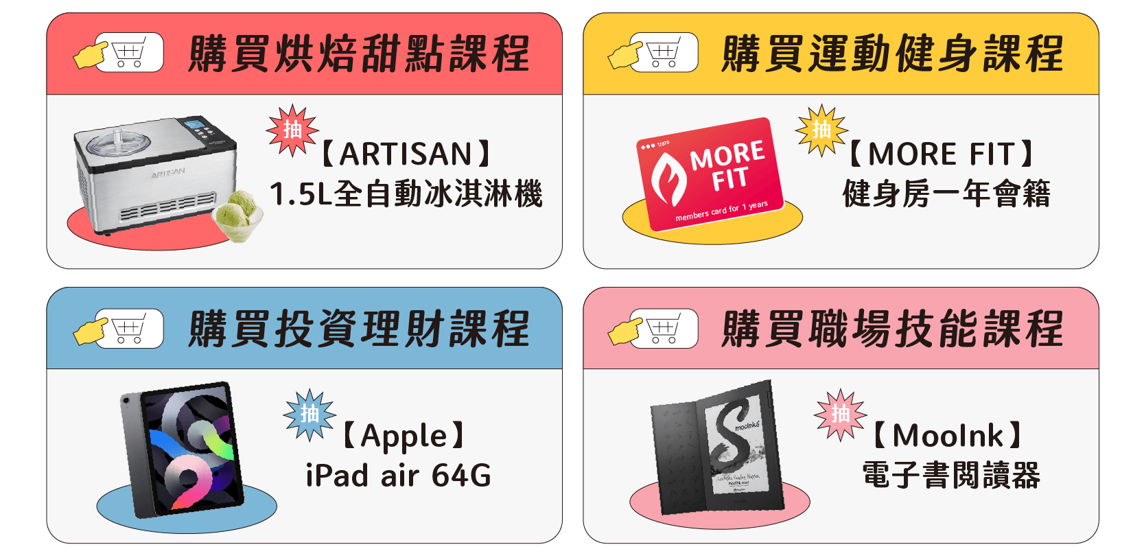 PPA 加碼再贈「職場」、「烘焙」、「運動」、「財經」官方課程隨課程再送禮物分享卡與超值折價券!
