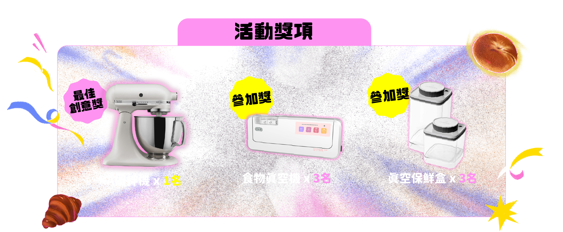 7.最佳創意獎,將由烘焙導師 Linda、王家承、張錫源、Alexis 票選出一名。參加獎將由系統抽出,共六名。