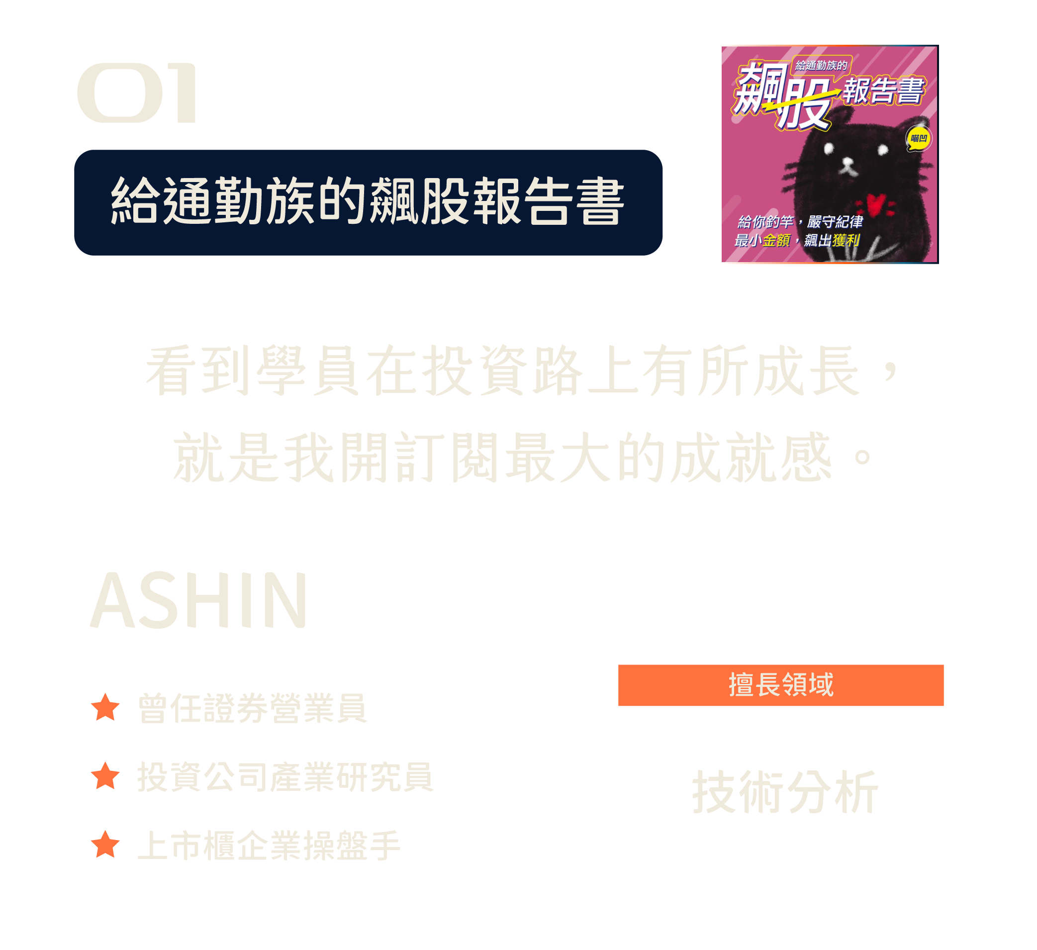 1.給通勤族的飆股報告書2.每日報告王-帶您看清每日外資以及投信的報告3.掌握趨勢 抓住獲利4.麥門-神乎期技5.丹尼波段研究社6.股市航空|完整的紀律與策略 掌握趨勢提高勝率