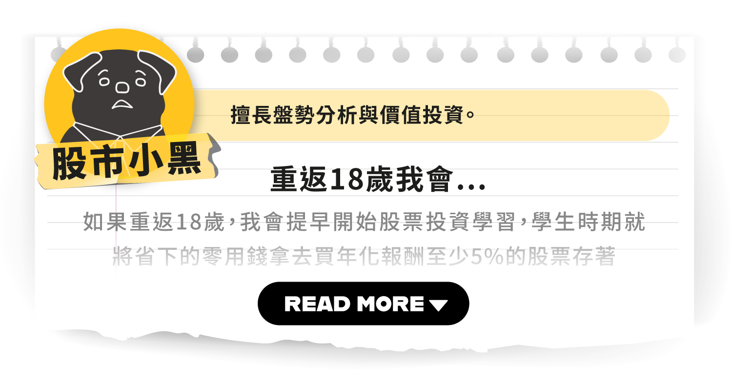 如果重返18歲,我會提早開始股票投資學習,學生時期就將省下的零用錢拿去買年化報酬至少5%的股票存著。