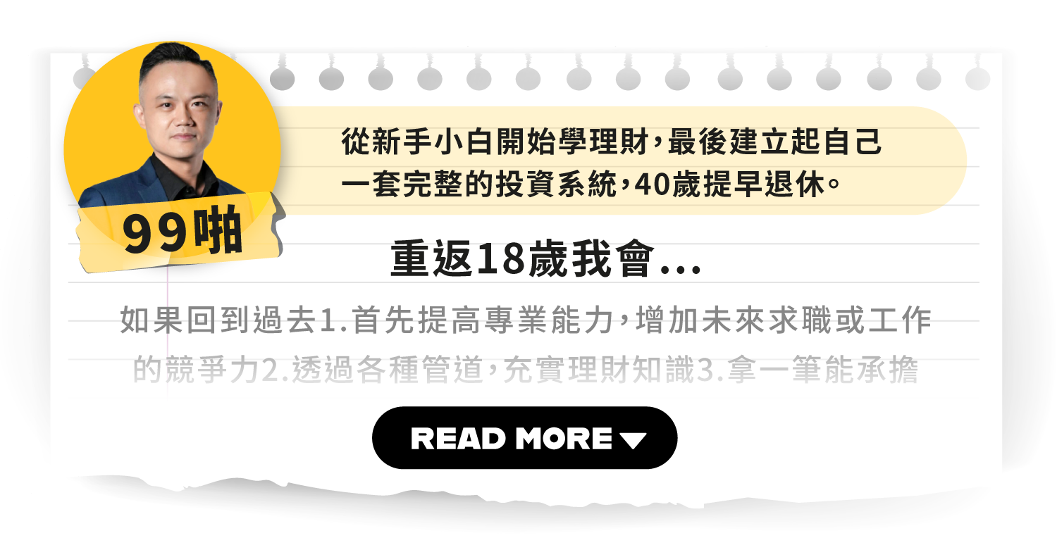 所以我若是18歲,我會努力開始學習股票投資,PPA無論免費或付費的理財文章都很充足,是個值得花時間、花錢學習的好地方。