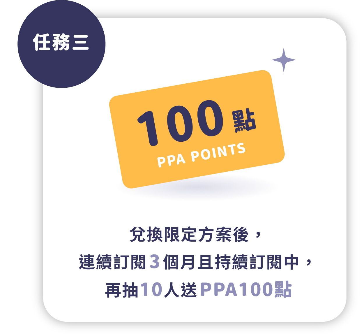 任務三,連續訂閱三個月,贈送 PPA 點數|規則說明