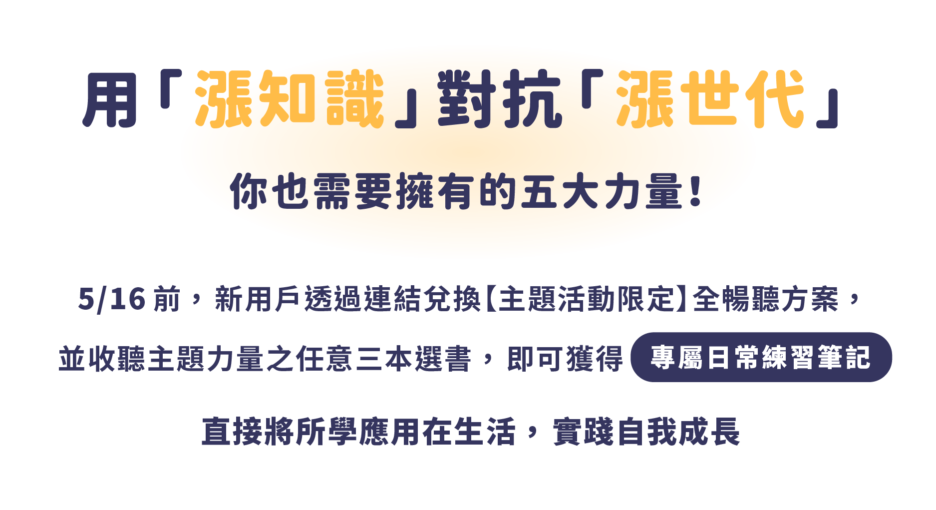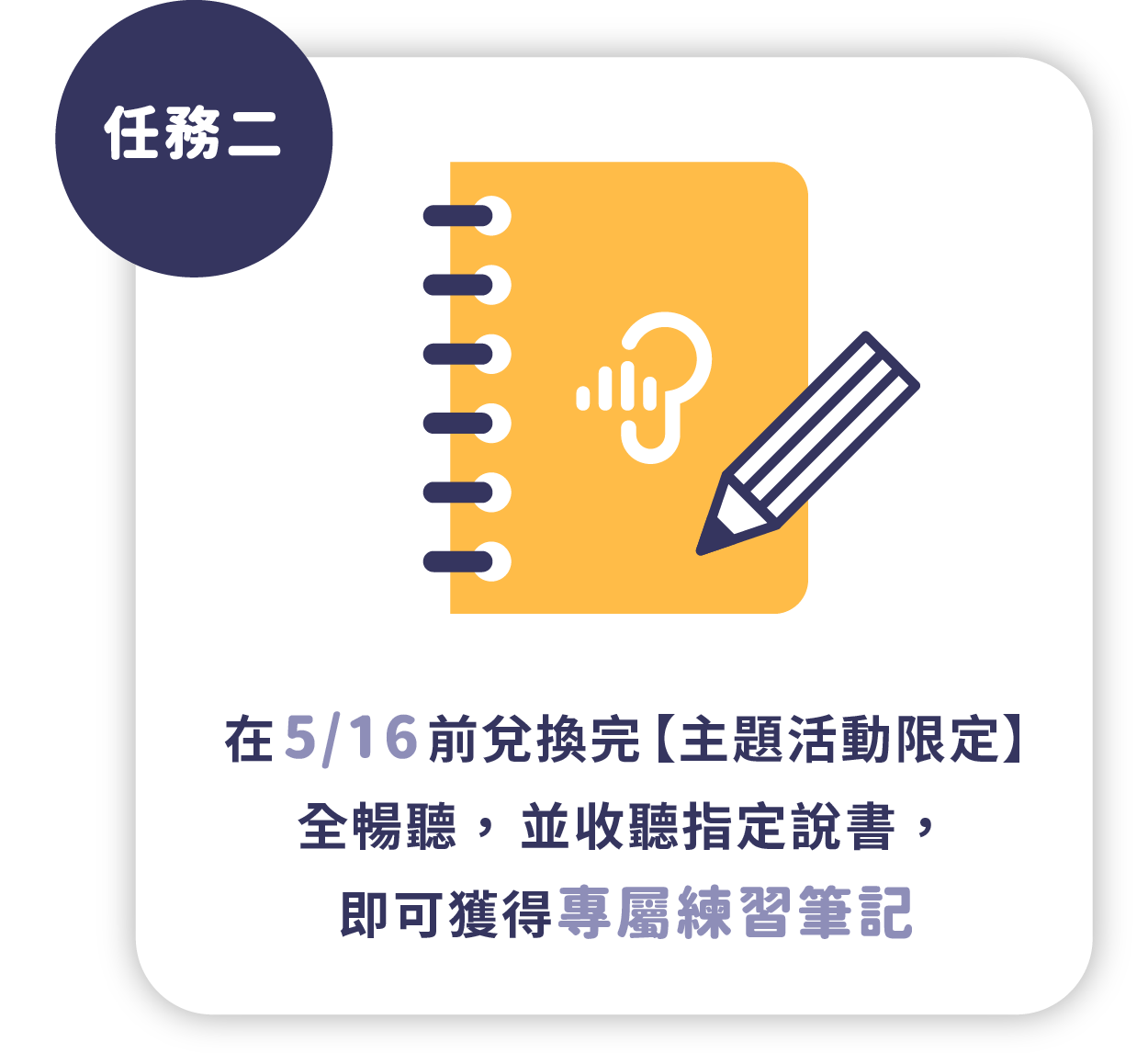 。限於本活動期間,新用戶訂閱【主題活動限定】全暢聽方案,且收聽任三本指定選書之參與者可得。