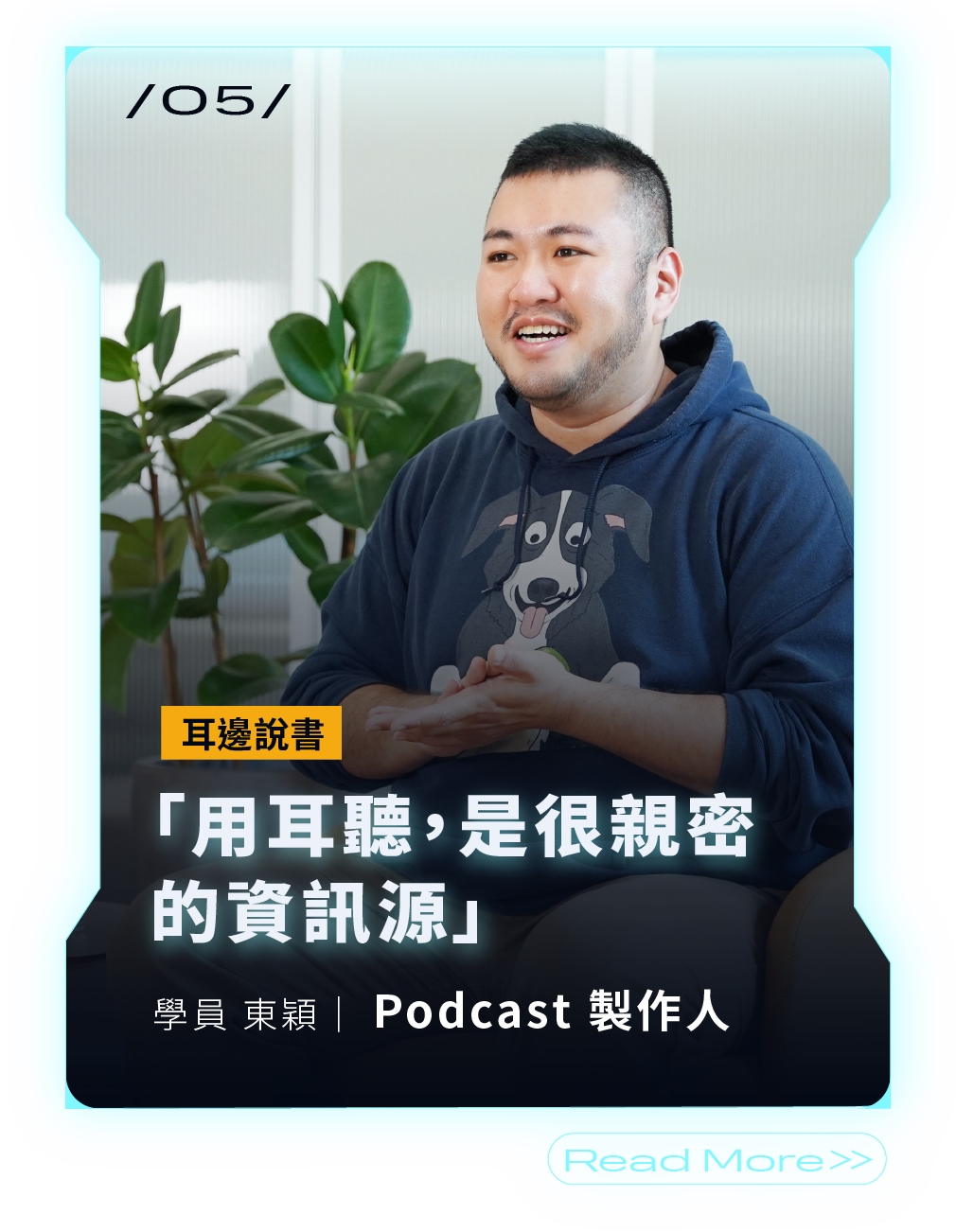 我們訪問了站上的學員,想與你分享他們的學習故事有咖啡師、Podcast 製作人、創業家、網紅經紀、科技業產品經理即便扮演不同角色,傳達出相同對於學習的嚮往期待透過他們的分享,讓你憶起成長的悸動!