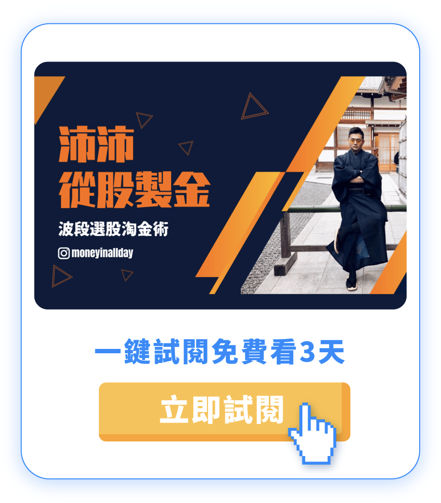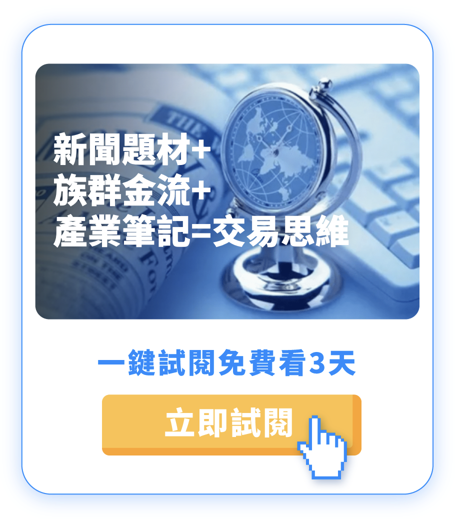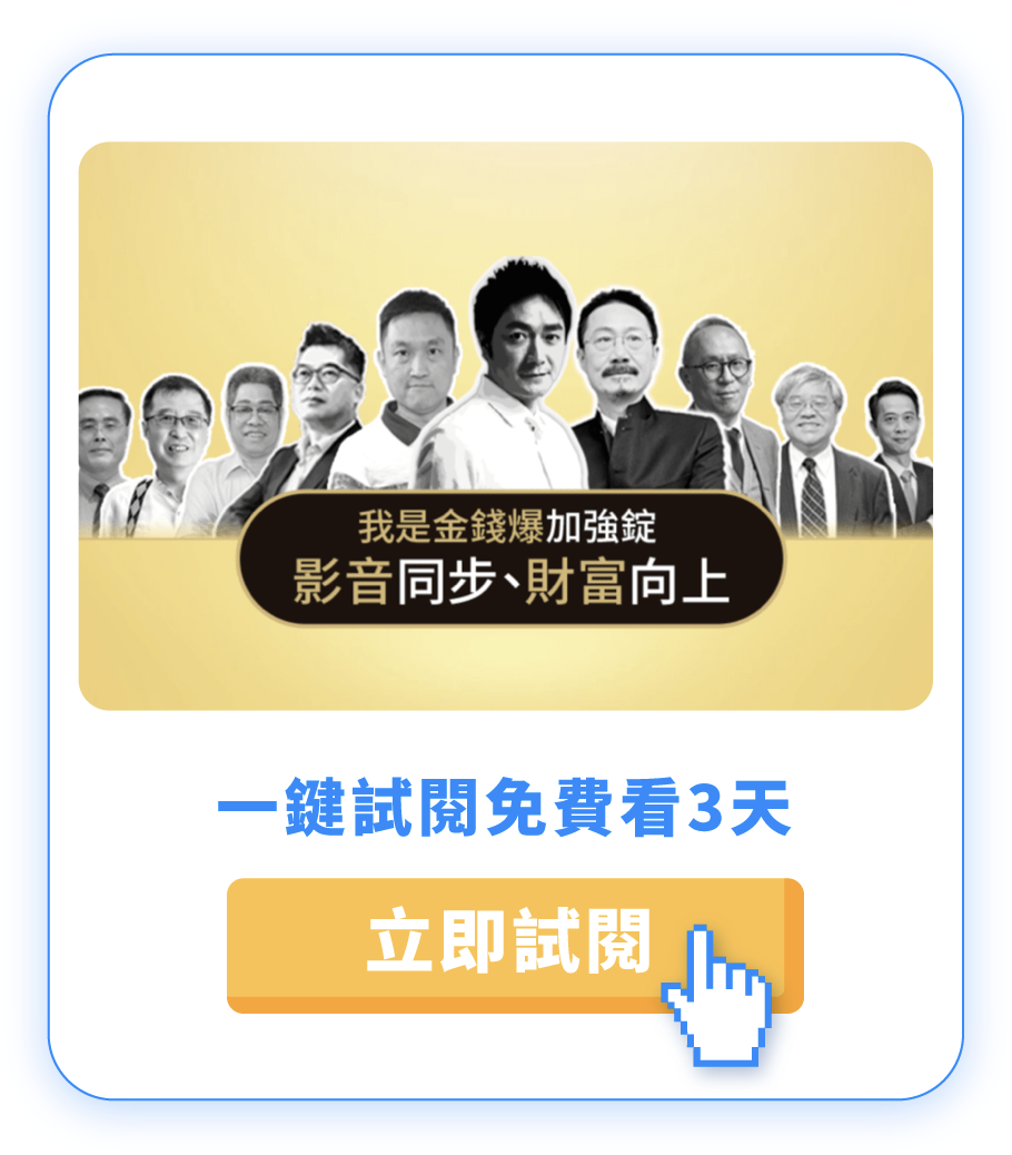 *每個財經專案提供一個試閱方案,每個試閱方案一人限試閱一次,試閱前務必看清楚試閱4大重點。從開始試閱的那一刻,計算試閱天數,例如8/10開啟試閱,可以試閱到8/12。若沒有取消試閱,8/13會自動扣款,正式訂閱。若不想訂閱,必須在試閱到期日前8/12前往會員訂單管理取消試閱。8月漲薪節試閱活動時間為8/10~8/20,若會員選在8/20開啟試閱,可以試閱到8/22。